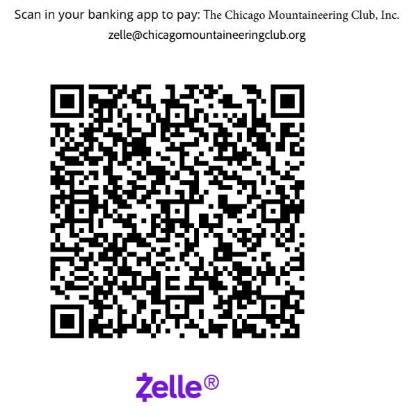 - Payments can be made to the club's Zelle account, see below